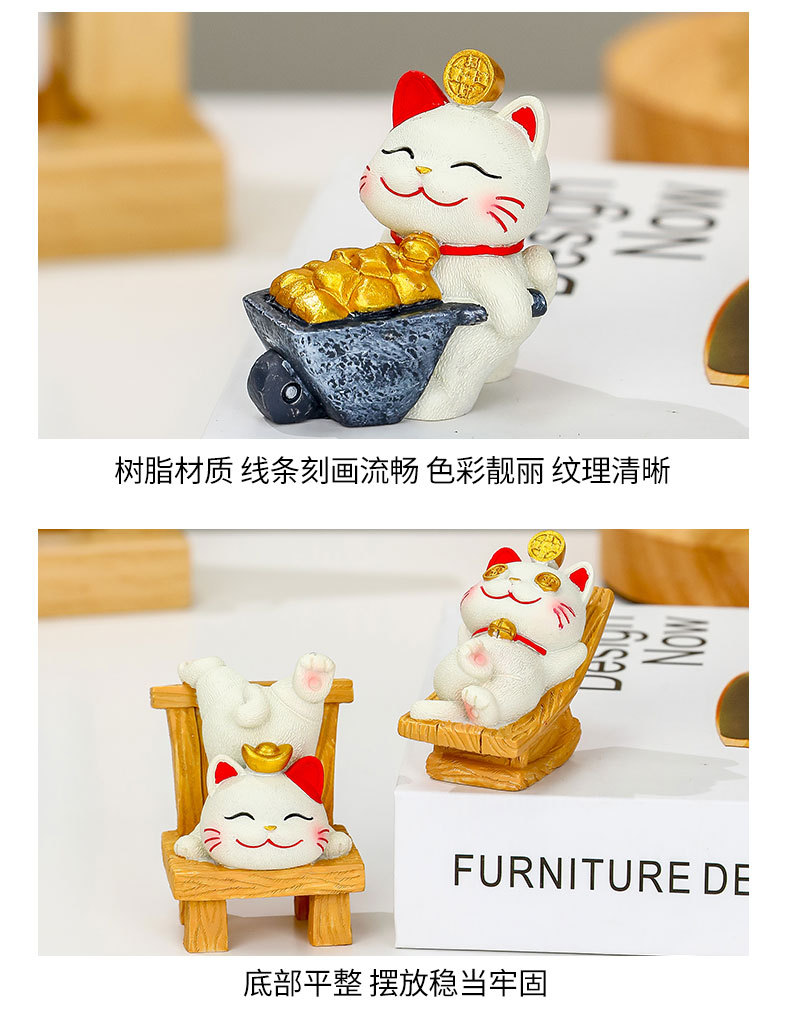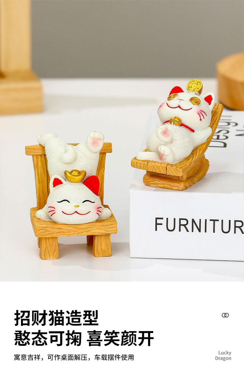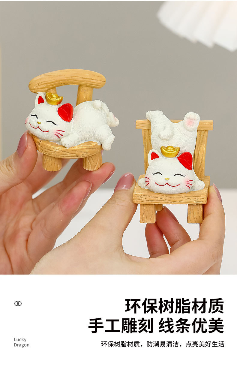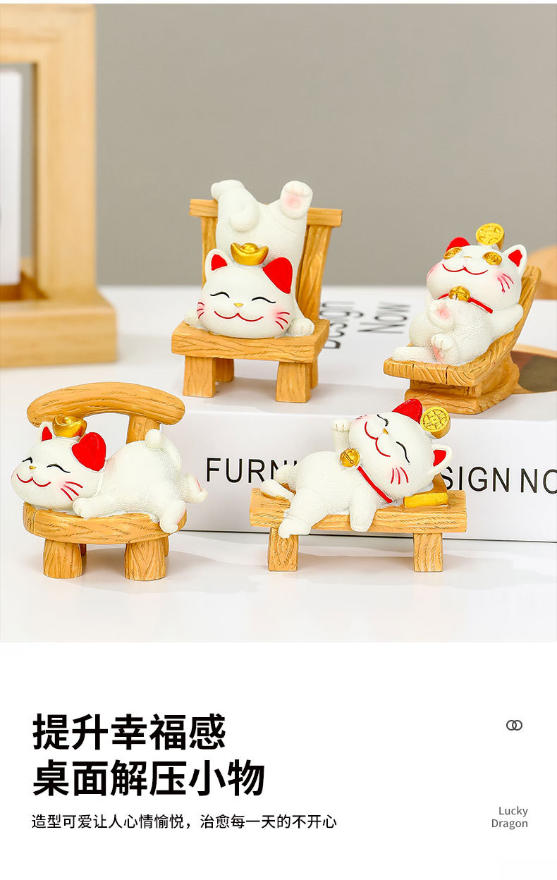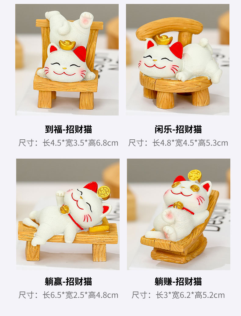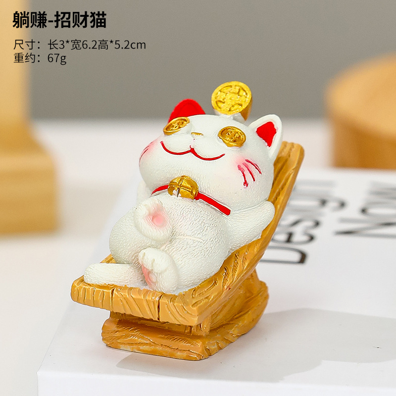 躺贏招財貓小擺件可愛貓咪辦公室桌面裝飾品工位解壓禮物家居擺件的屬性