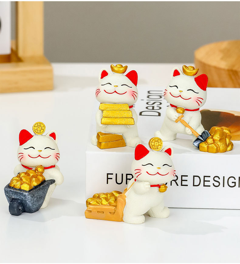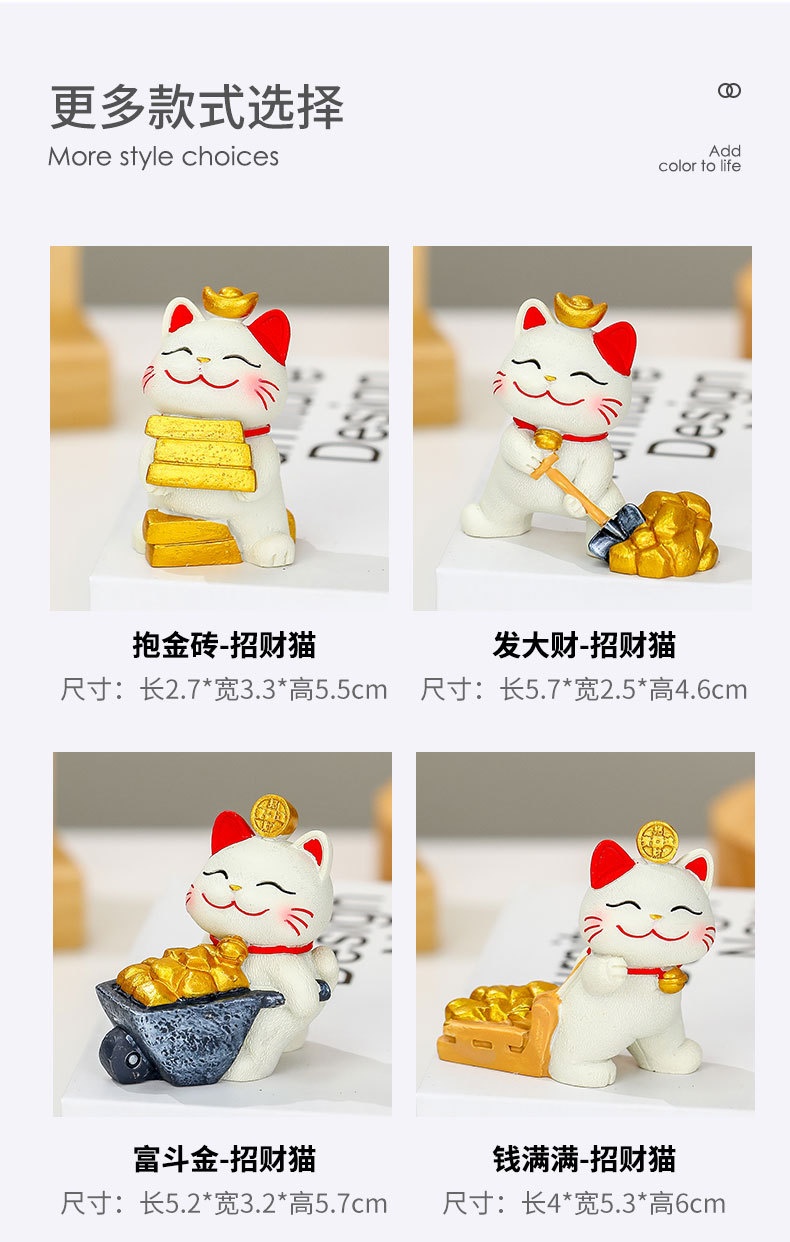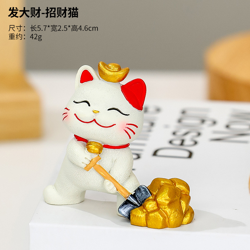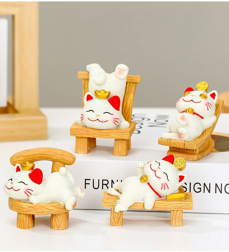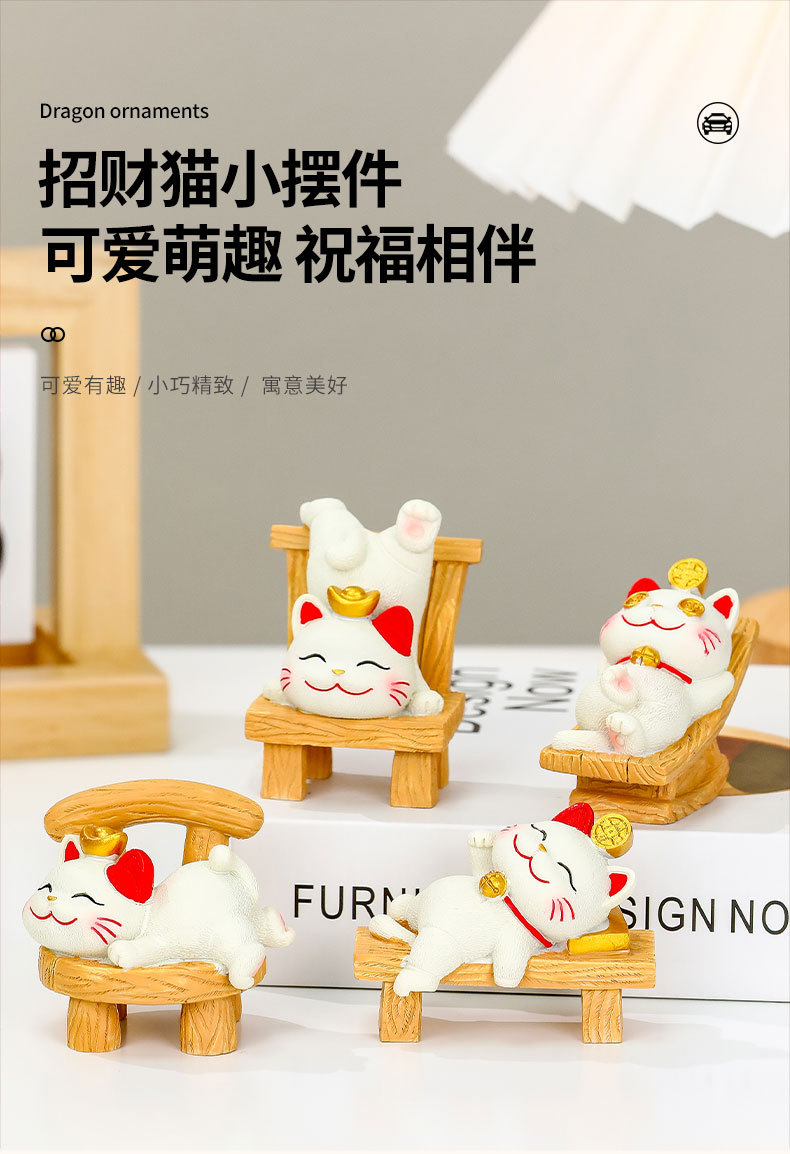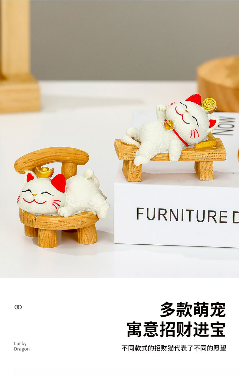 躺贏招財貓小擺件可愛貓咪辦公室桌面裝飾品工位解壓禮物家居擺件的屬性