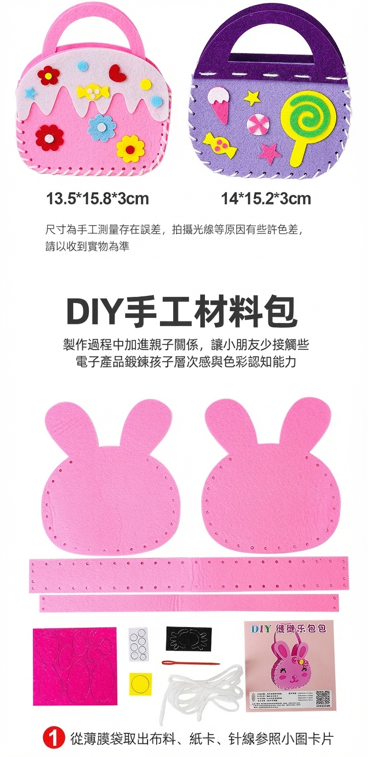 【兒童DIY手工】不織布縫縫樂手提包材料包 幼兒園益智玩具 9款動物造型的屬性